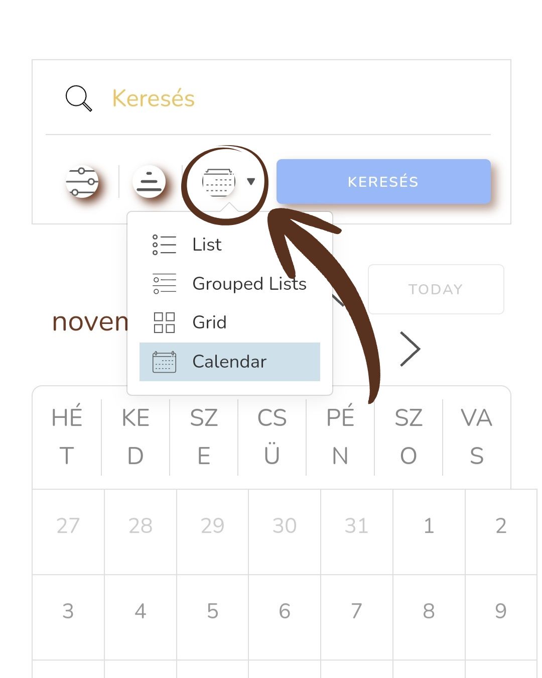 - Naptár nézet (Calendar)